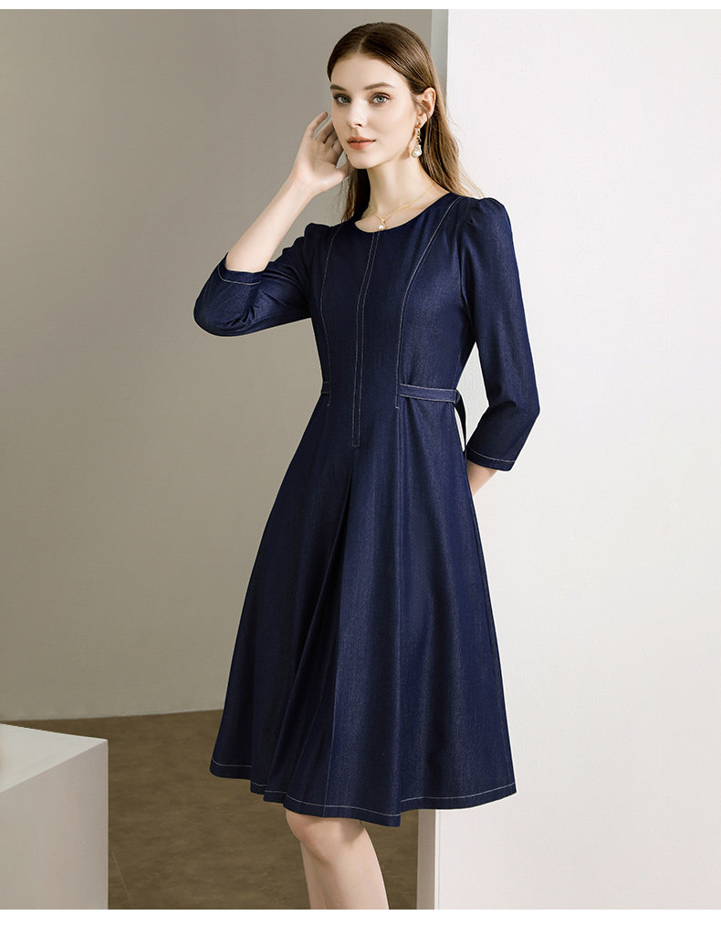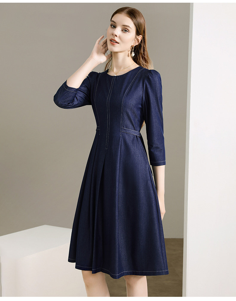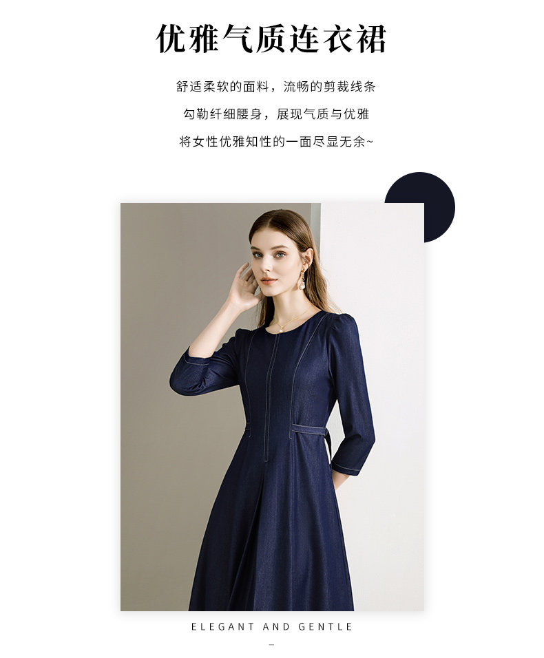 茗思高级感纯色气质连衣裙女春秋2024新款七分袖简约修身显瘦裙子