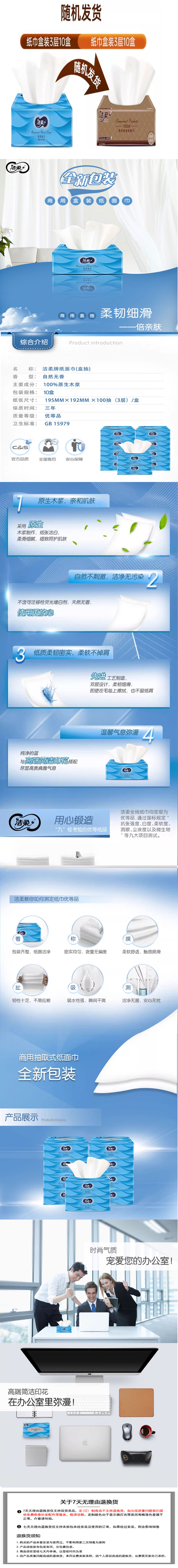 洁柔 抽纸 3层无香擦手纸盒装整实惠装抽纸 100抽*10盒 款式随机 QJ