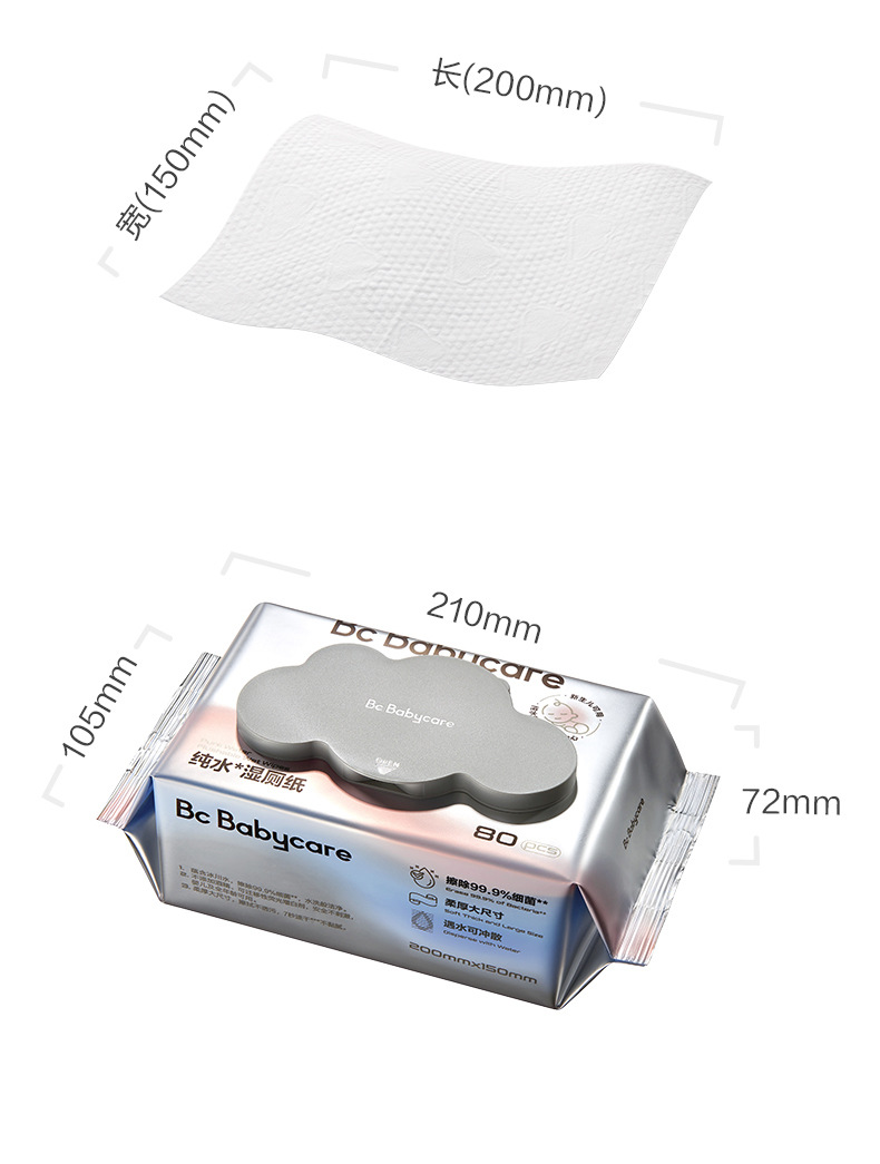 bc babycare户外 旅游随身带湿厕纸家用湿巾可便携80抽/包 2包起售